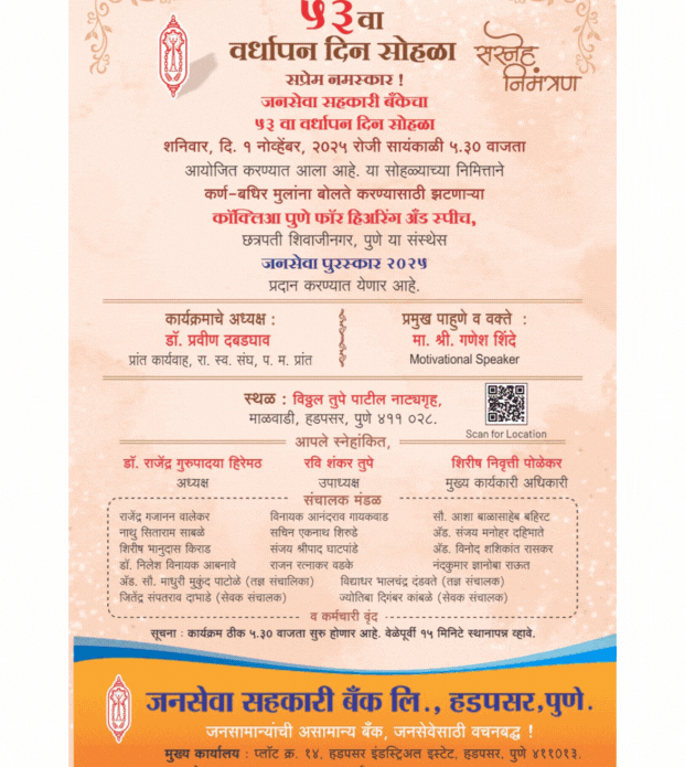 My experience with Janaseva Bank , Pune has been very accommodative. When I need to transfer funds and pay bills it can be done at my convenience. It has been a positive experience with personable banking service in a timely mannerRajaram Jagtap, Hadapsar, Pune